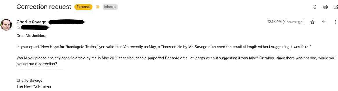 From time to time, journalists have to re-learn that it is a mistake to engage with, rather than ignore, bad-faith actors; they use it for more fodder. Jenkins says he will write about our exchange. Rather than let him misrepresent things, I’m going to post its entirety here./3